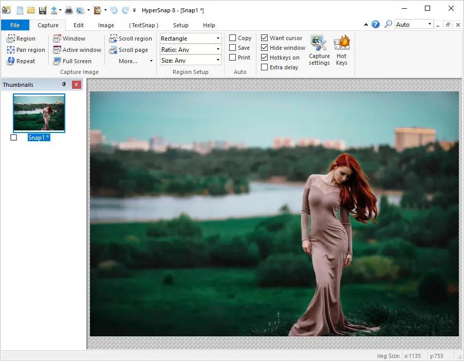 HyperSnap is versatile and extremely easy-to-use. You can switch between modern "ribbon" interface shown on the image above, or tranditional menu and toolbars.